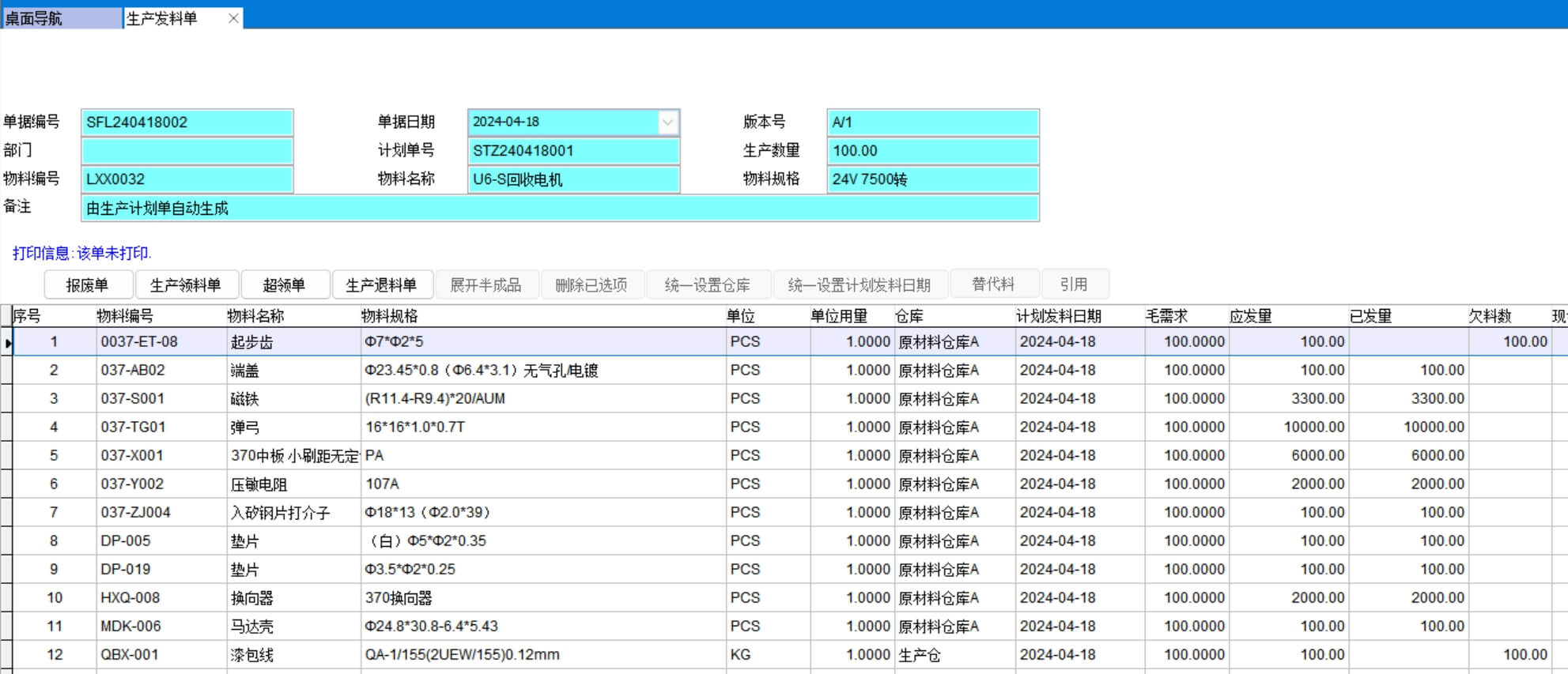 生產發料單
