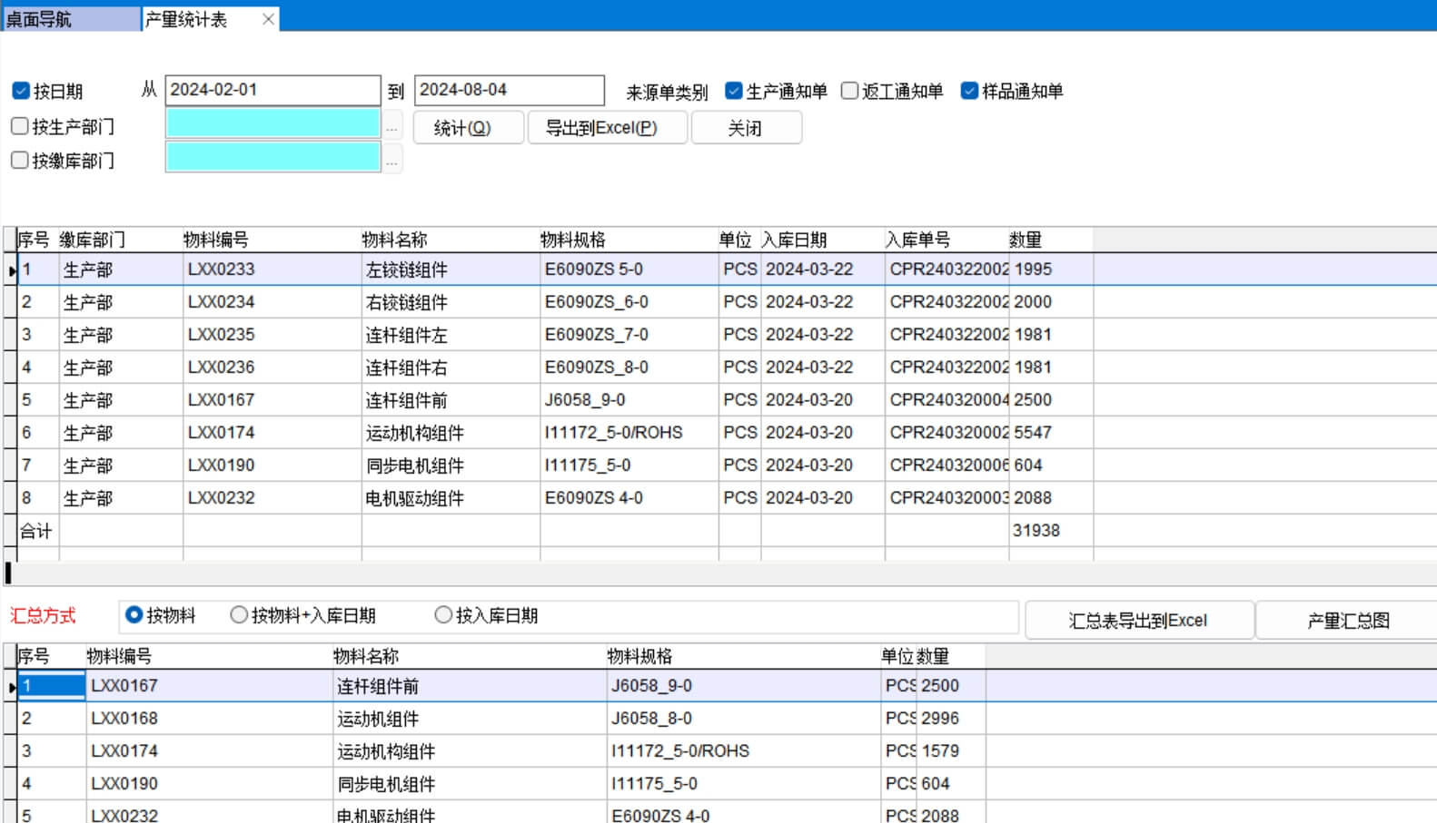 生產入庫匯總表