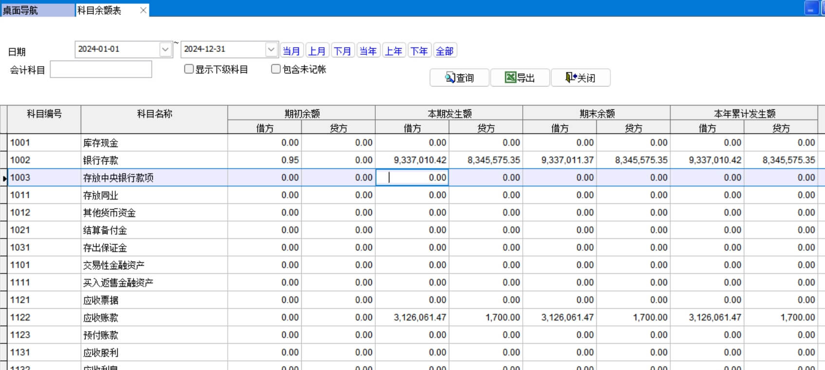 科目余額表