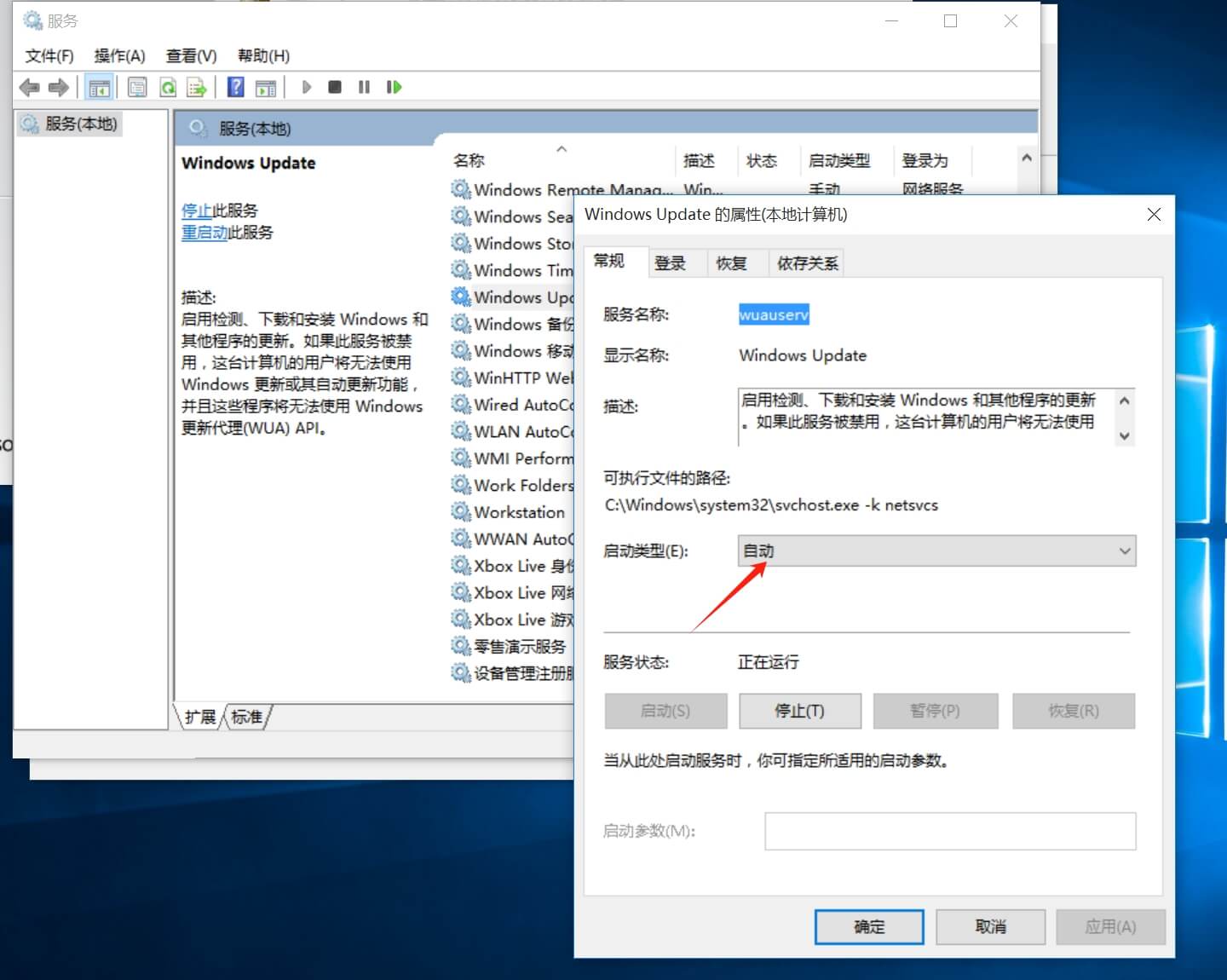 進入服務,找到windows update,啟動類型:自動,服務狀態:啟動
