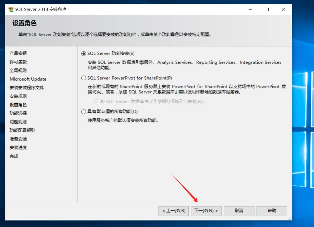 安裝完回到SQL2014安裝界面繼續