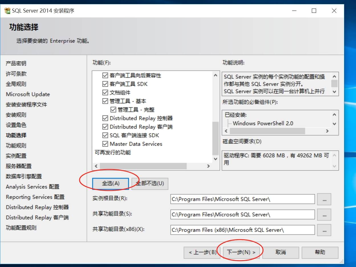 如果對SQL不熟悉最好和我一樣點全選,這樣操作步驟和我一樣