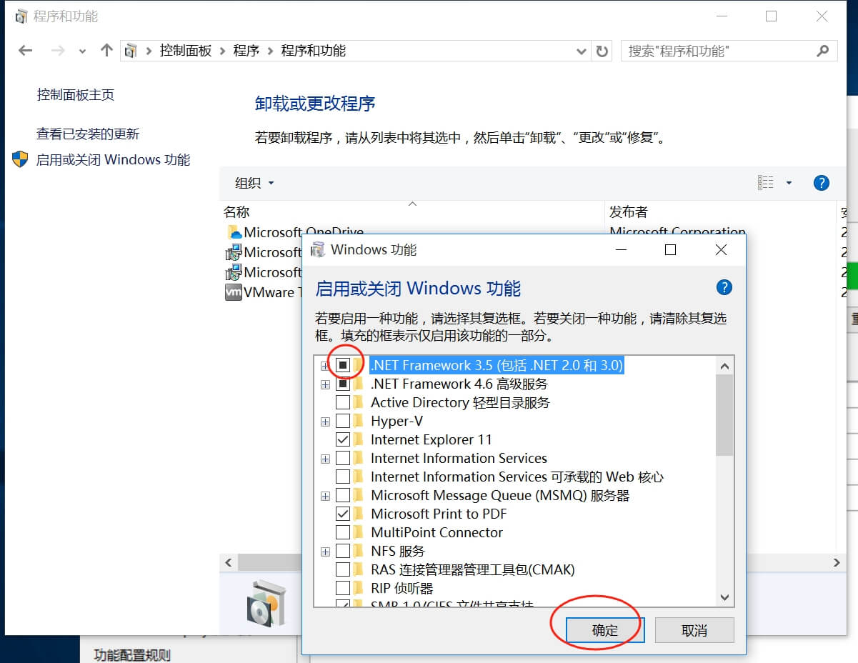 有出現這個錯誤項的要先安裝framework3.5,控制面板-程序和功能,啟用或關閉windows功能