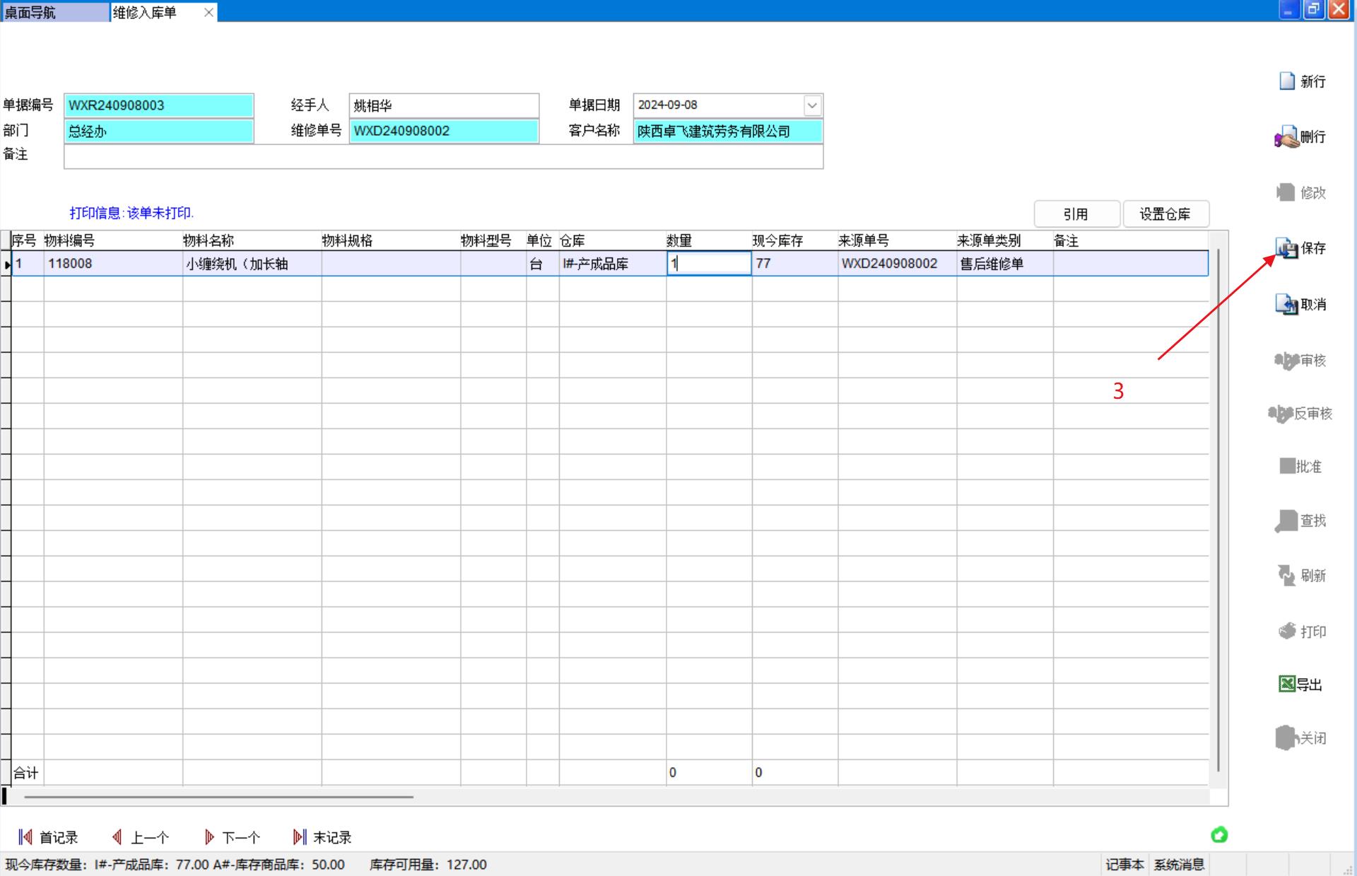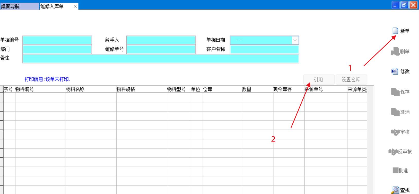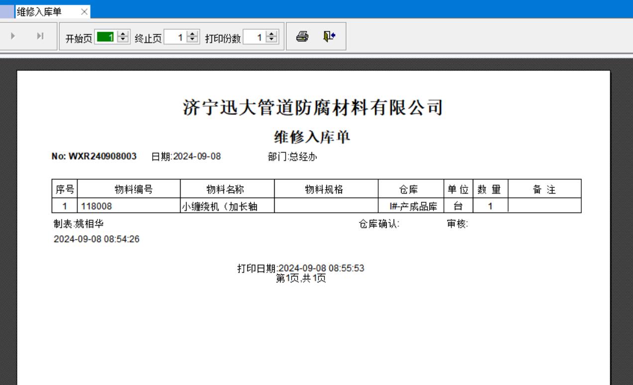 打開路徑:【主菜單】-【倉庫】-【入庫單】-【維修入庫單】