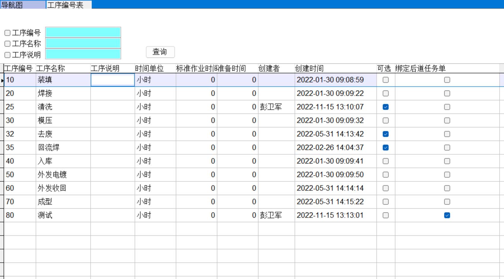 1、工序編號表