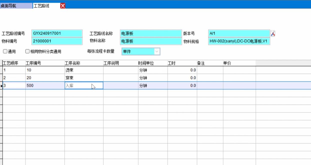 2、添加每個產(chǎn)品的工藝路線