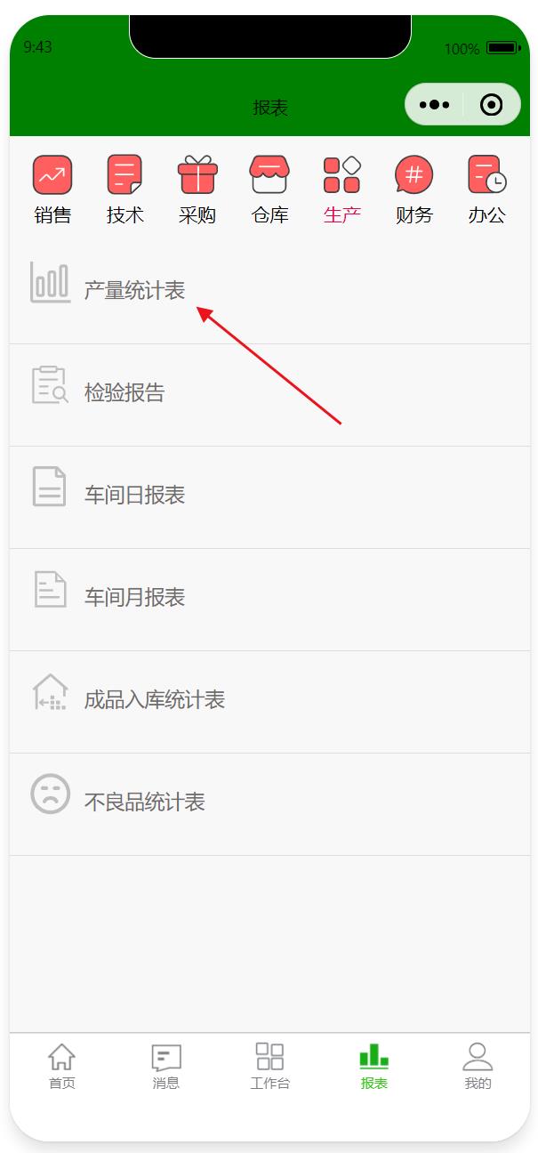 本文介紹的產(chǎn)量統(tǒng)計表是通過工序掃碼報工完成的產(chǎn)量。