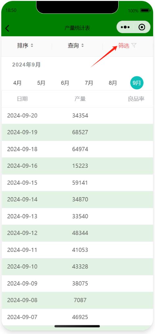 也可以在手機(jī)端上實(shí)時查看產(chǎn)量統(tǒng)計表