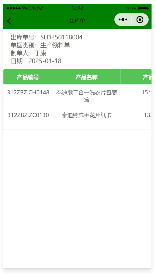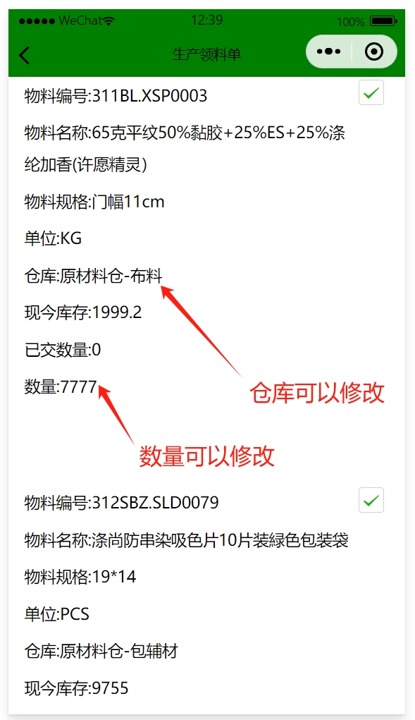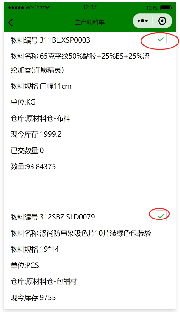 完成后在手機端和電腦端都能看到該領料單