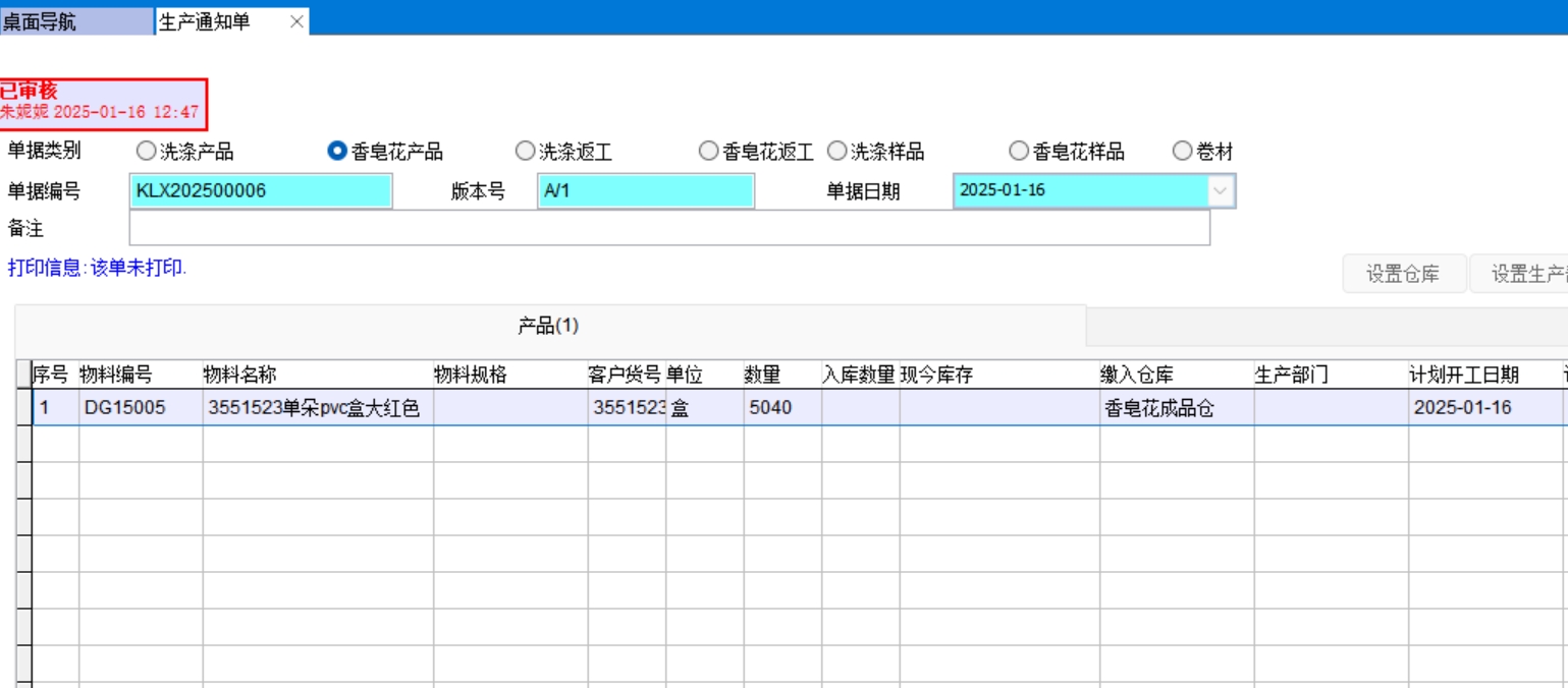 2、打印生產通知單,打印成A4紙,帶條碼,跟著產品一起流動,產品生產完成掃通知單上的條碼入庫