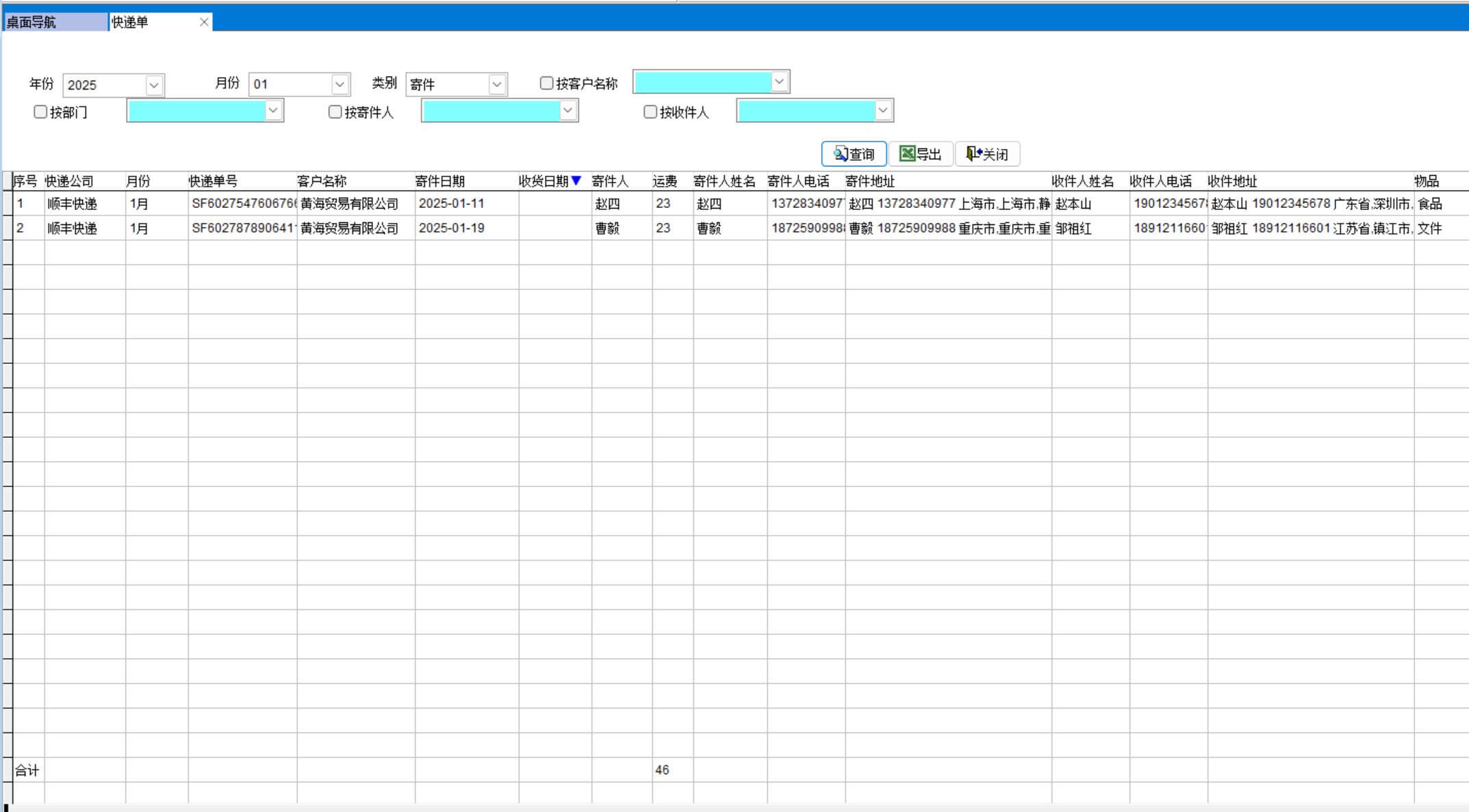2、快遞費記錄會同步到PC端ERP系統(tǒng)中,可以對快遞費按客戶、部門、按員工、按月份年份進行統(tǒng)計分析。