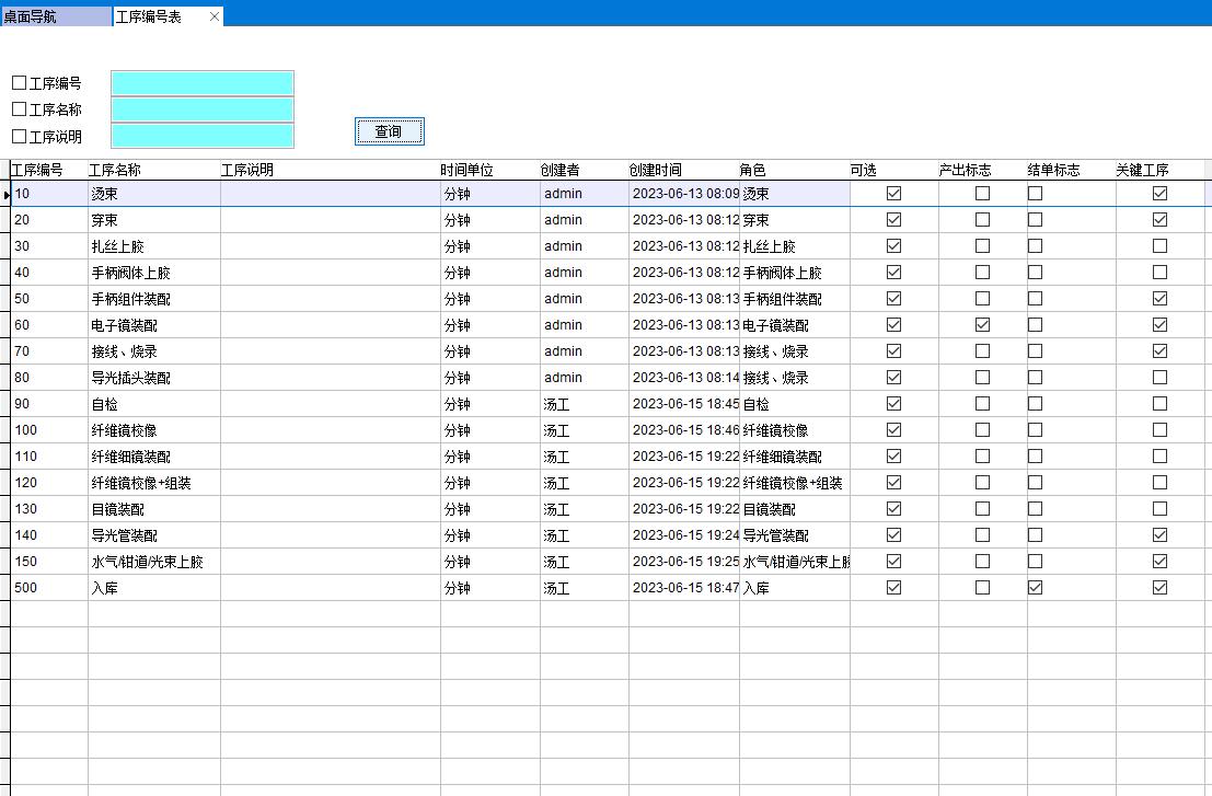 記錄每個(gè)產(chǎn)品的工序名稱、工序順序、工時(shí)等信息