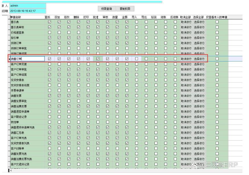 某用戶有查看銷售訂單的權限