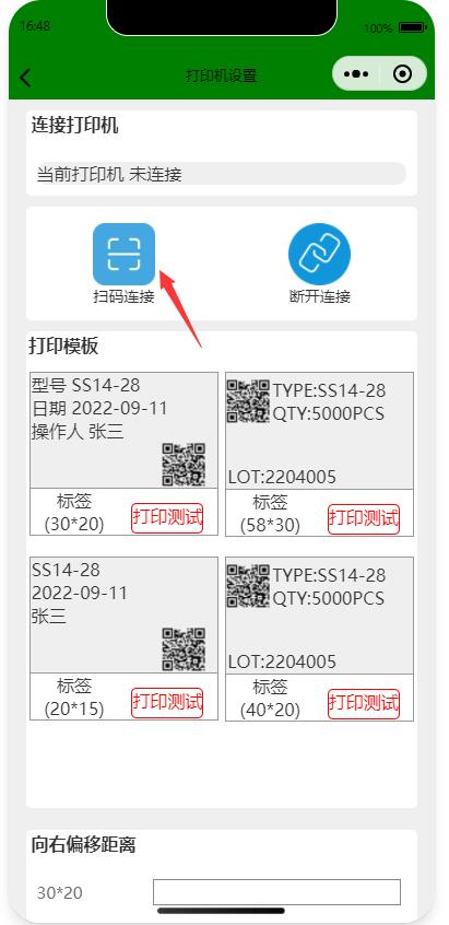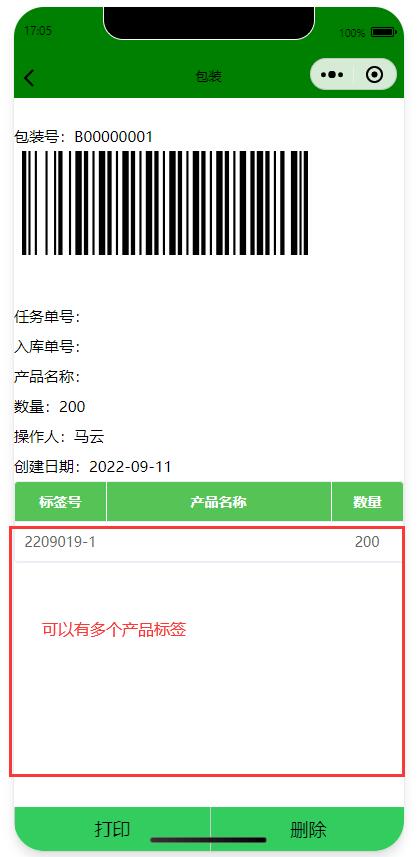 掃碼后能自動打印產品標簽,支持藍牙打印機