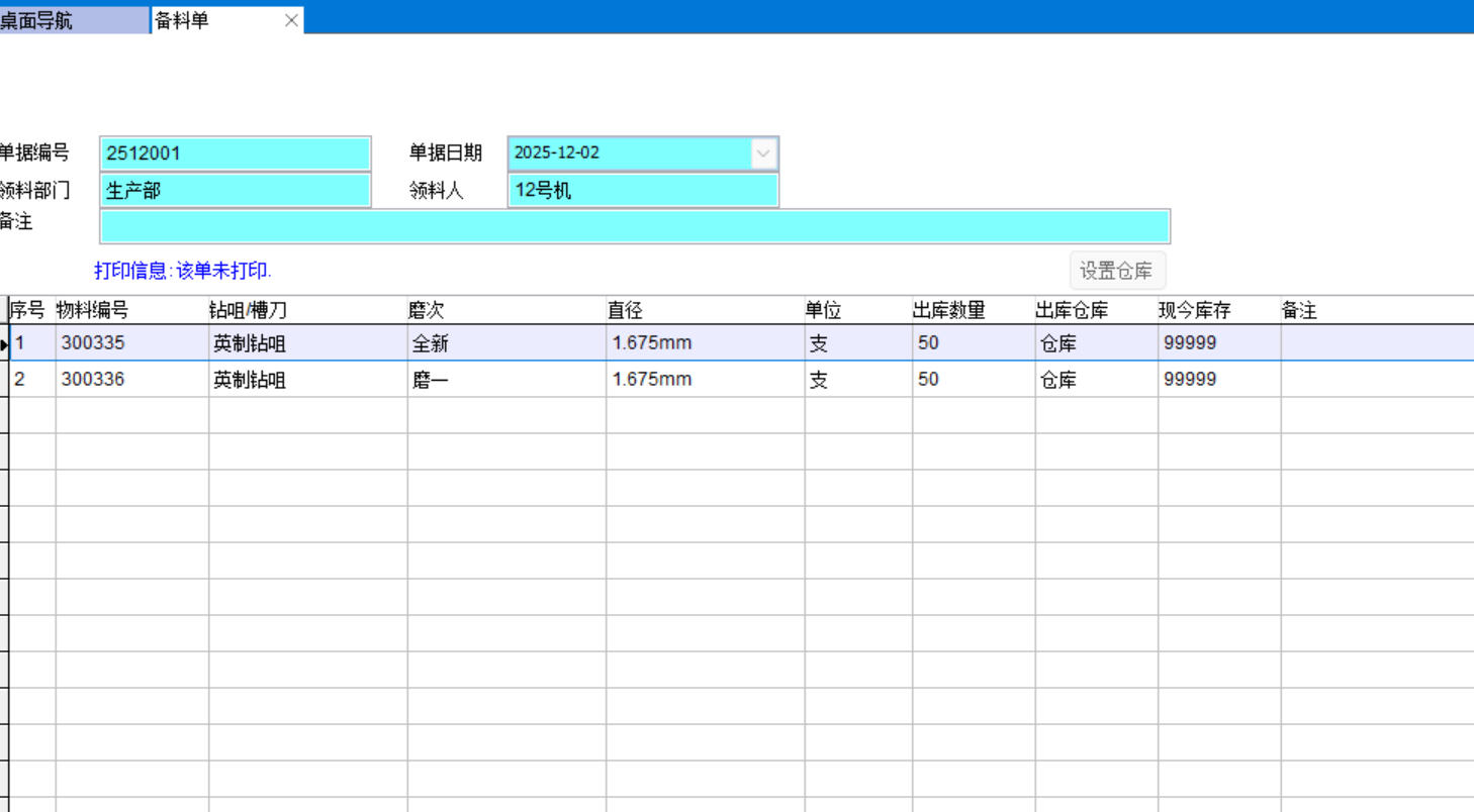 1、車間在ERP中申請備料