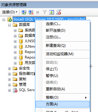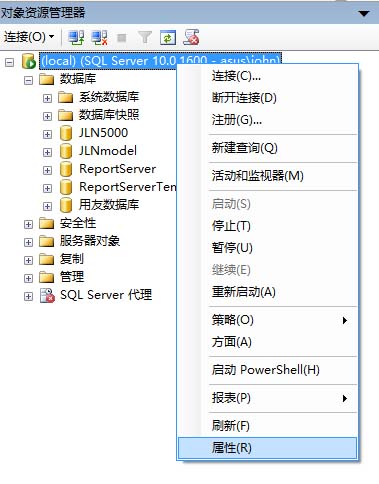 1、打開SSMS,用windows身份連接數據庫,登錄后,右鍵選擇“屬性”