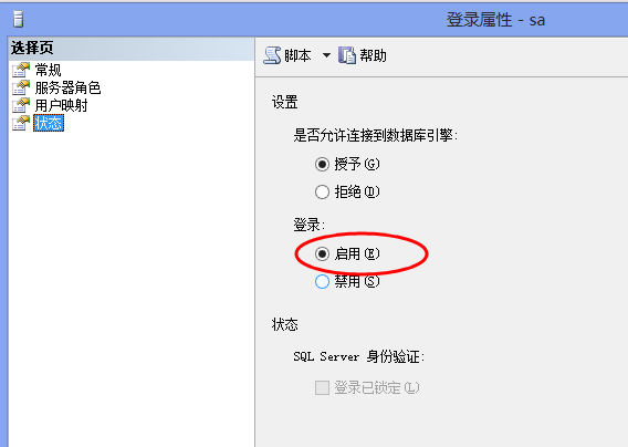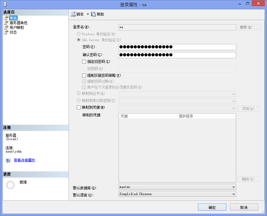 9、至此SSMS已設置完畢,先退出,再用sa登錄,成功即表示sa帳戶已經啟用