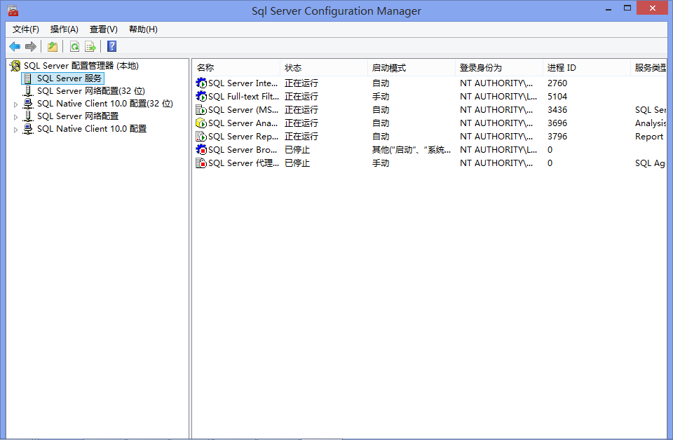 10、下面開始配置SSCM,打開SQL SERVER配置管理器,選中左側的“SQL Server服務”,確保右側的“SQL Server”以及“SQL Server Browser”正在運行