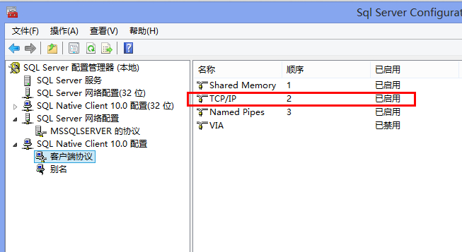13、將"客戶端協議"的"TCP/IP"也修改為“已啟用”