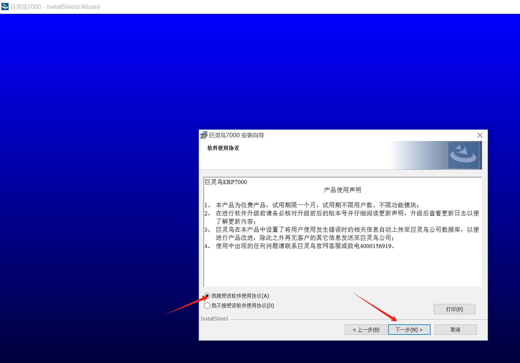 運行巨靈鳥ERP安裝程序,下載地址:http://www.dnfq.com.cn/custom.asp?id=31