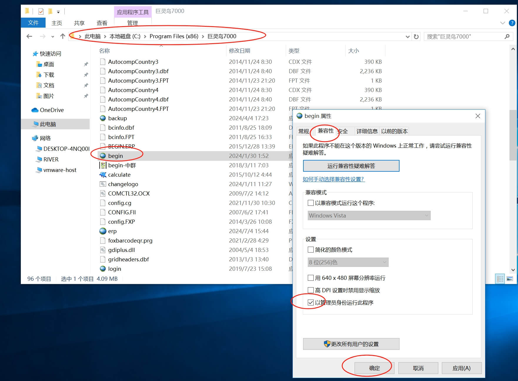 2、如果不想卸載也可以設置ERP的啟動文件,以管理員身份運行