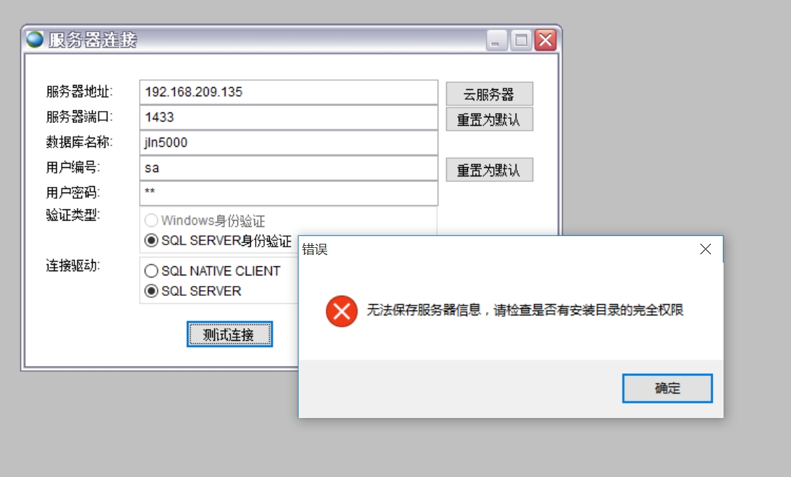 如果服務器連接測試提示沒有保存權限,那應該是你電腦win10、win11的權限問題了