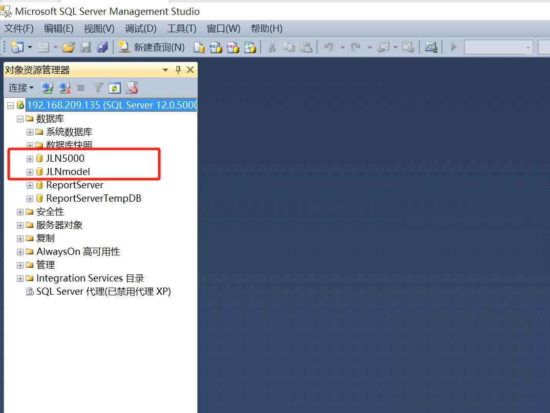 無論是5000版還是7000版都會建立這兩個數據庫,JLN5000是用戶日常用到的數據庫,JLNmodel是新建帳套時用到的空白數據庫模板。