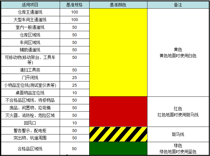 5、常用線條顏色寬度規(guī)格(油漆或膠帶)