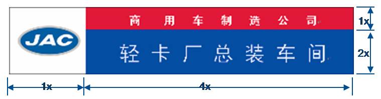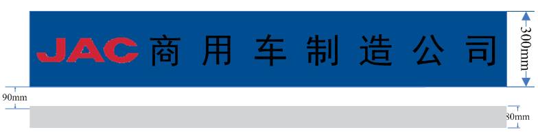 2.顏色:公司logo采用純紅JAC字樣,其余字體顏色為黑色;灰色貼條顏色為淺灰。