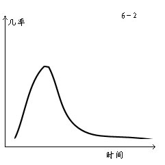 “非常正確。”我說,然后把相關的幾率分布畫出來,5分鐘到達的幾率是零,25分鐘的幾率最高,但即使是3個小時,幾率也不是零。(圖6-2)