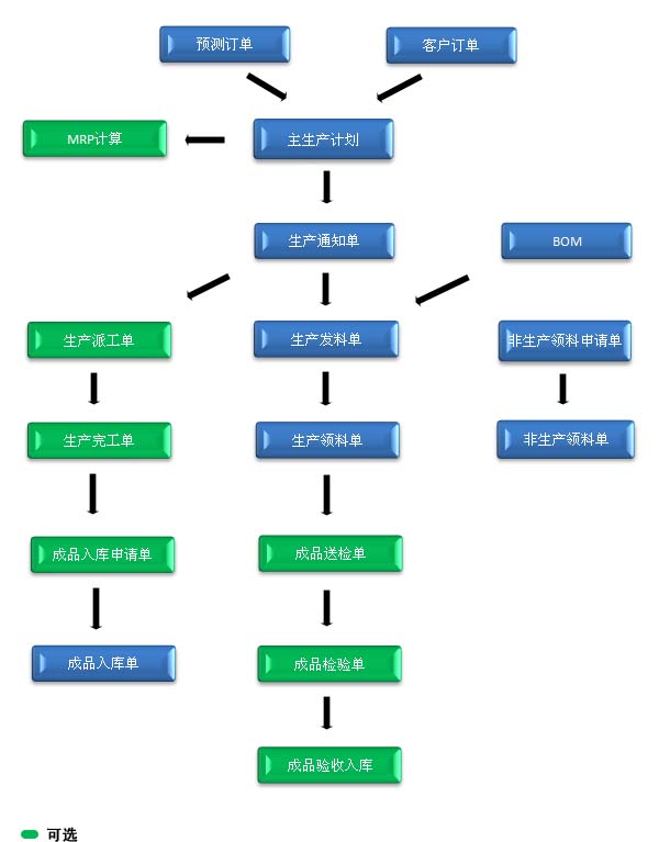 生產任務完成可以通過送檢單檢驗入庫,也可依據生產通知單或成品入庫申請單入庫。