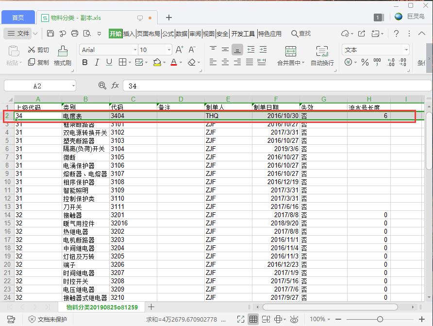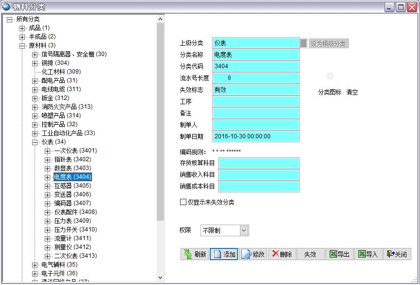 如果是一級分類不用填寫上級代碼,二級到五級分類必須指定上級分類代碼如下圖,電度表的上級分類代碼是34,且已經在系統里存在
