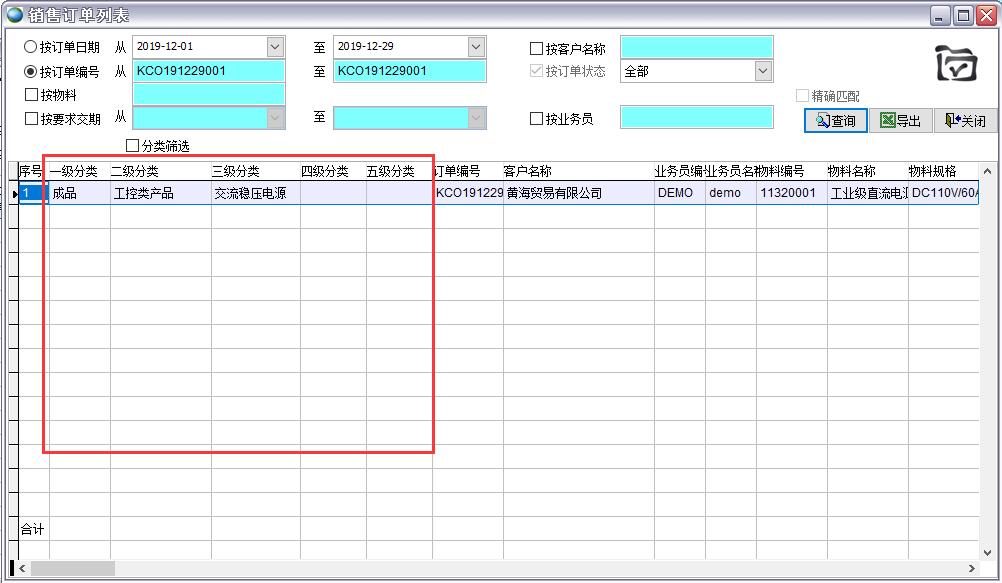 物料的分類在很多單據中會顯示