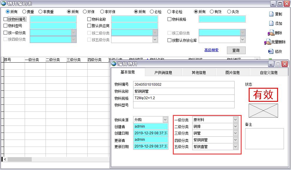 必須將要刪除的分類的所有子類都刪除后才能刪除此分類。此分類已存在物料編號時無法刪除,辦法只有兩個:1、刪除所有此分類的物料編號或改為其他分類;2、將此分類失效,失效后的此分類無法分配物料編號。
