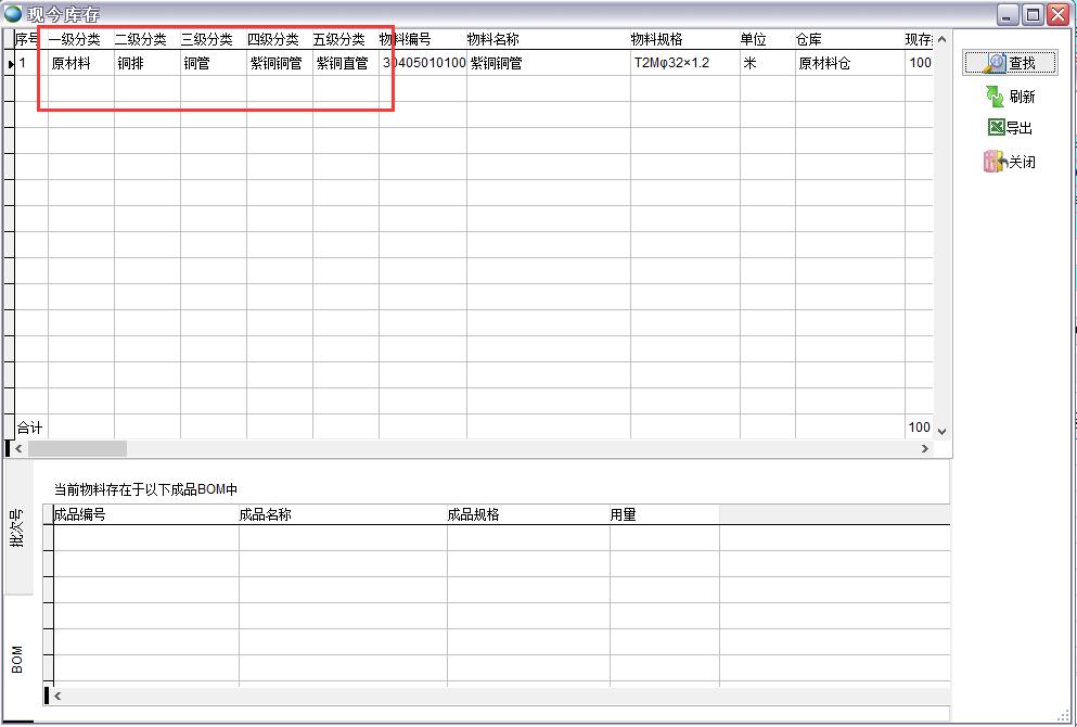 最頂層分類為一級分類,一級分類的下級分類為二級分類,以此類推。在一級分類中,成品、半成品、原材料是不能刪除的,因為在一些報表和查詢中都會直接用到成品、半成品、原材料這3個分類,如查找現今庫存