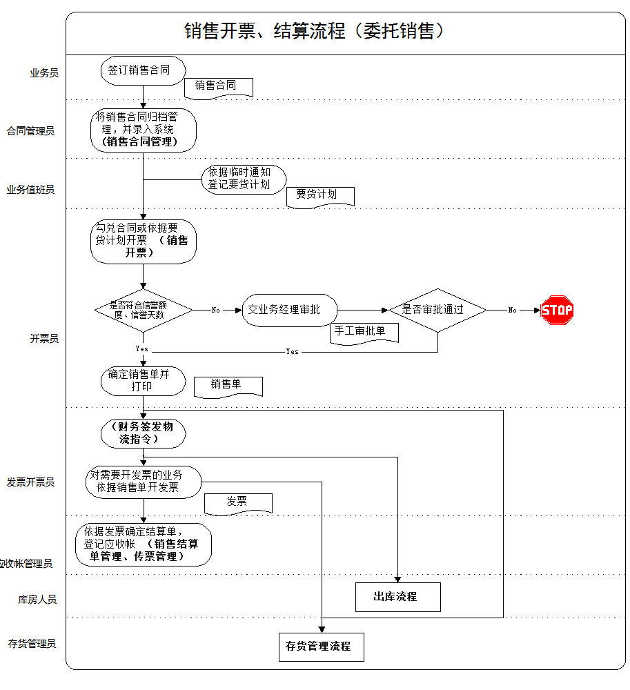 E、 發票開票員:核對銷售單簽發物流指令并依據財務主管確認要進行結算的銷售單開具正式發票。將確認取消的發票作廢。