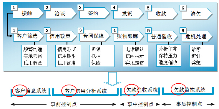 4、全程信用管理:跟隨銷售和回款的交易環(huán)節(jié),在事前/中/后,以客戶和欠款為中心實施的監(jiān)控