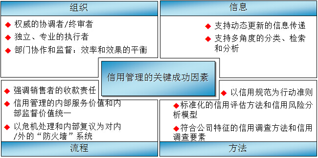 信用管理以財務(wù)為理論基礎(chǔ),在實踐上跨財務(wù)、營銷和法律的三叉點 … 無論是否建立獨立的信用部門,都需要獨立的管理模式,不能只是衍生和加強(qiáng)其中的一方面 … 信用管理的五項職能包括