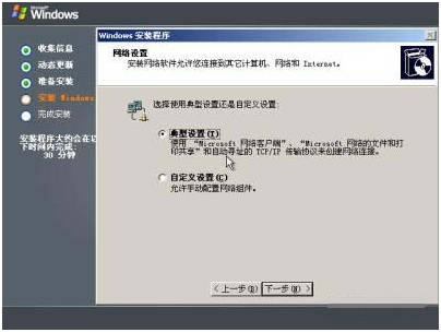 讓你選擇網(wǎng)絡(luò)安裝所用的方式,選“典型設(shè)置”就行,然后點“下一步”出現(xiàn)如下圖