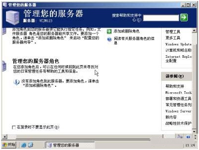 如果你不想每次啟動都出現(xiàn)這個窗口,可在該窗口左下角的“在登錄時不要顯示此項”前面打勾然后關(guān)閉窗口。關(guān)閉該窗口后即見到Windows 2003的桌面