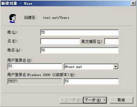 5、接下來就可以給域中的用戶創建郵箱了。可以直接用域控制器或者從ExchangeServer中的 “Active Directory用戶和計算機”工具,在創建新用戶賬戶的同時也就可以為其創建郵箱: