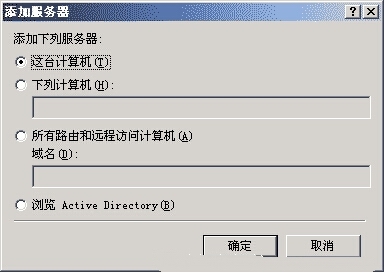 圖1-1 當(dāng)前的管理界面中尚未添加服務(wù)器,所接下來需要將本機(jī)添加進(jìn)去,方法是在服務(wù)器狀態(tài)上按鼠標(biāo)右鍵,選擇添加服務(wù)器,打開添加服務(wù)器的對話框,選擇“這臺(tái)計(jì)算機(jī)”,見圖1-2