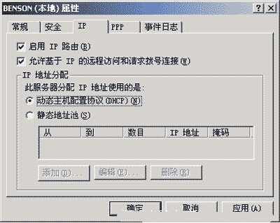 圖1-5 接下來我們所需要改動(dòng)的地方只有一個(gè)就是配置VPN接入是分配的IP地址 配置接入的IP地址 VPN服務(wù)在接受了VPN客戶端的接入之后就會(huì)為客戶端分配一個(gè)IP地址,客戶端就是用這個(gè)地址和服務(wù)器或服務(wù)器連接的內(nèi)部網(wǎng)絡(luò)通信。這個(gè)地址需要實(shí)現(xiàn)分配好,這個(gè)地址可以有兩種配置方法: 1、使用和內(nèi)部網(wǎng)絡(luò)相同的地址段,這樣遠(yuǎn)程接入的VPN客戶就和直接連接在內(nèi)部網(wǎng)絡(luò)的計(jì)算機(jī)一樣,其網(wǎng)絡(luò)配置和在公司內(nèi)部的計(jì)算機(jī)沒有什么區(qū)別。這種方式適合于單機(jī)撥入的情況,但不太適合網(wǎng)絡(luò)對網(wǎng)絡(luò)的VPN互聯(lián)。 2、使用和內(nèi)部網(wǎng)絡(luò)不同的地址段,這時(shí)候VPN服務(wù)器相當(dāng)于一臺(tái)路由器,比較和與網(wǎng)絡(luò)對網(wǎng)絡(luò)的互聯(lián)。對于單機(jī)就比較麻煩,對于接入移動(dòng)式辦公的電腦最好還是選用第一種方式。 配置接入地址段的方法也有兩種方法,一種是利用DHCP服務(wù)器,另一種就是直接在接入服務(wù)器上配置。前一種方法需要介紹DHCP服務(wù)器的使用,這里就暫不介紹了。以下是配置接入服務(wù)器自己的地址段的方法。 在接入服務(wù)器上按鼠標(biāo)右鍵,點(diǎn)擊屬性,打開服務(wù)器的屬性對話框,選擇IP頁面,如圖1-6