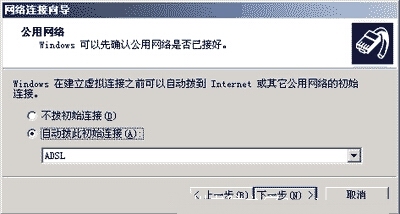 圖1-9 選擇通過Internet連接到專用網(wǎng)絡(luò),按下一步,進(jìn)入公用網(wǎng)絡(luò)配置,見圖1-10