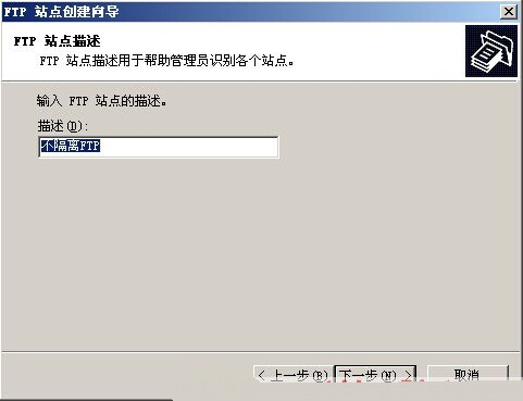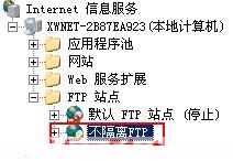 二、創建不隔離用戶FTP 1)單擊開始-管理工具-Internat信息服務(IIS)管理器,展開FTP站點,右鍵單擊默認FTP站點選擇停止。暫停默認的FTP服務 2)右鍵單擊FTP站點,選擇新建-FTP站點,彈出歡迎界面,單擊下一步繼續 3)設置IP和端口號