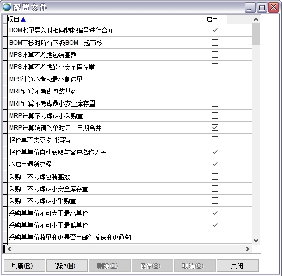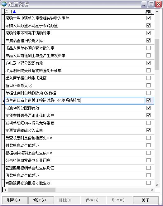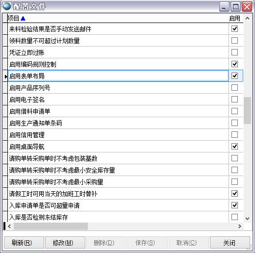 一個良好的ERP系統應具備一定的靈活性以滿足不同企業的需求,配置文件就是集成了一些開關設置方便用戶自定義。