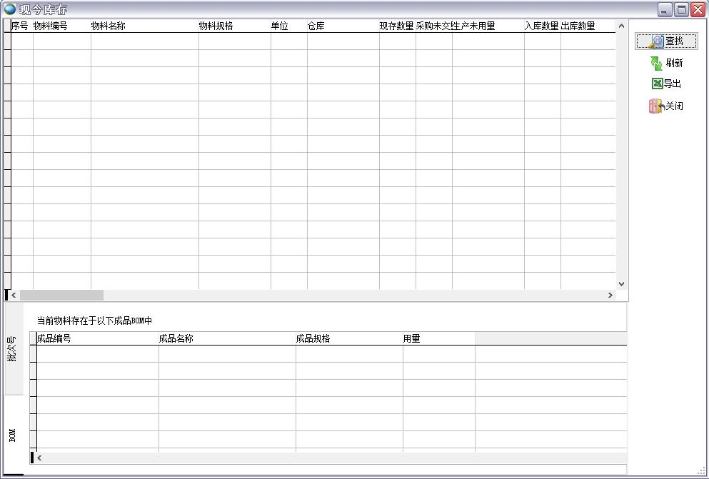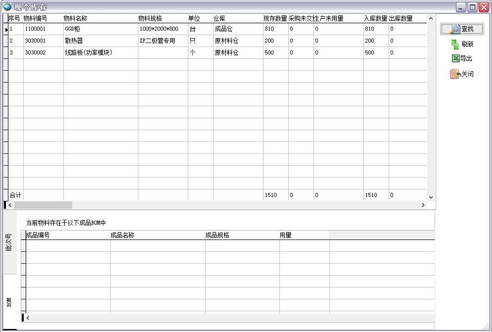 設置后打開現今庫存,按默認查詢條件直接顯示數據