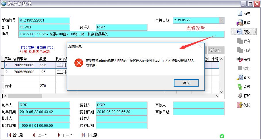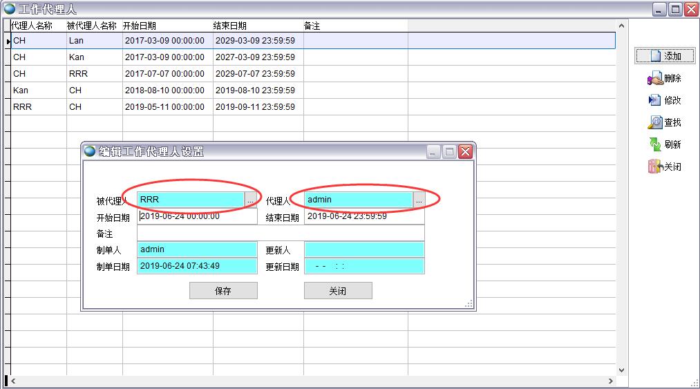 不勾選時只要有權限就可以修改其他人的單據,勾選時只能修改自己的單據,要修改其他人單據必須設置工作代理人