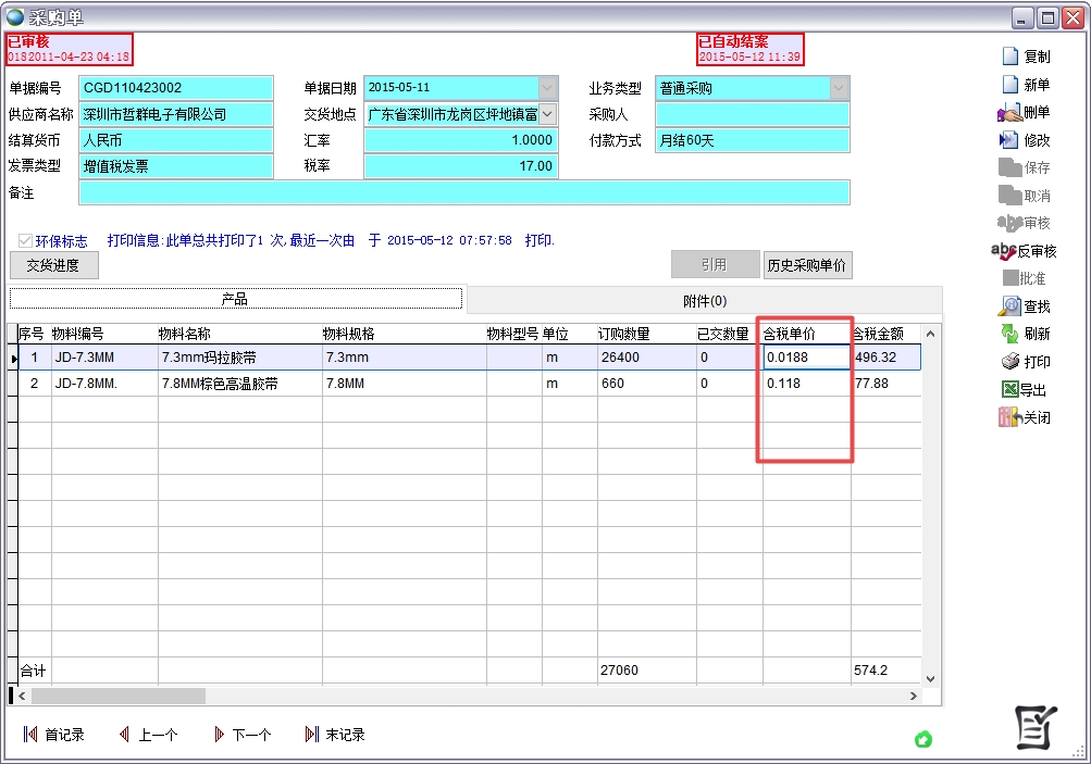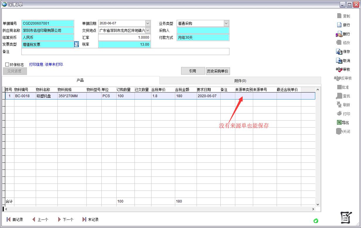 做采購單時單價是必填項且不能為0,如果勾選此選項后,為單價0的采購單也能保存