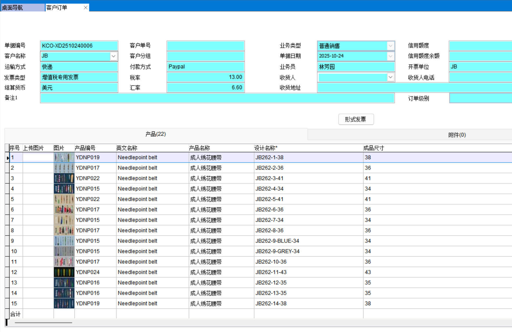 15.2如果在配置文件中勾選"客戶訂單單價自動獲取與客戶名稱無關 ",當選擇產品后,單價自動獲取自上個客戶訂單,不管客戶是否相同。